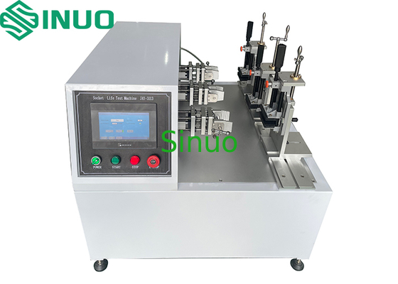Deze testapparatuur beschikt over 3 synchrone werkstations die tegelijkertijd 3 lineaire schakelaars, 3 pluggen of 3 sockets kunnen testen. Het systeem stopt automatisch en alarms als een station een abnormale werking ervaart.